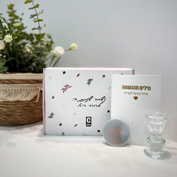 הערכה מכילה: פמוט + מראת כיס + סידור מקוצר בצבע לבן או ורוד לבחירה, ניתן לחרוט שם על הסידור.